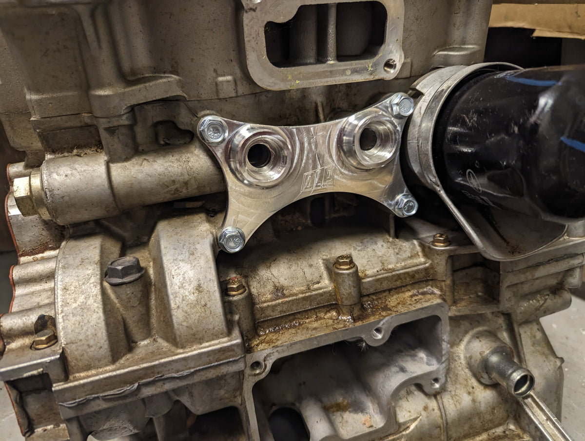 This adapter uses two -8 ORB fittings, allowing you to run custom oil lines and route them to an external oil cooler. This makes it easier to build a system that fits your setup and improves oil cooling performance.
